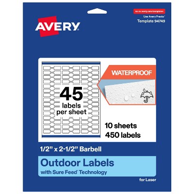 Avery Outdoor Waterproof Labels, 0.5" x 2.5" Barbell
