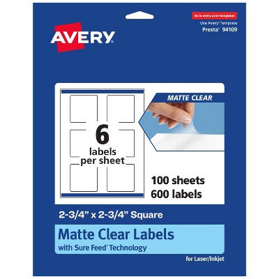 Avery Matte Clear Labels,  3" x 3" Square