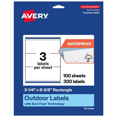 Avery Outdoor Waterproof Labels, 3-1/4" x 8-3/8" Rectangle