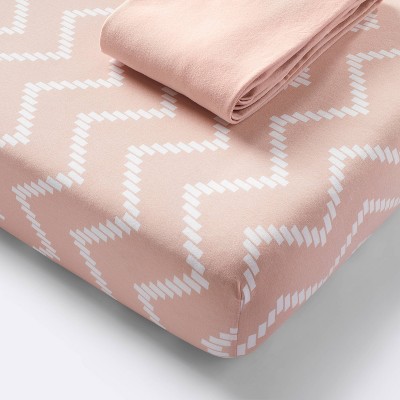 Jersey Fitted Crib Sheet - Pink Chevron and Solid Heirloom - Pink - 2pk - Cloud Island™