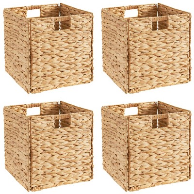 Ornavo Home Water Hyacinth Storage Cube Bin Baskets, Set of 4