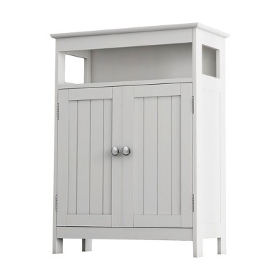 VANIRROR Freestanding Storage Cabinet with Doors, Entryway Organizer With Open Shelf for Bathroom & Living Room, White