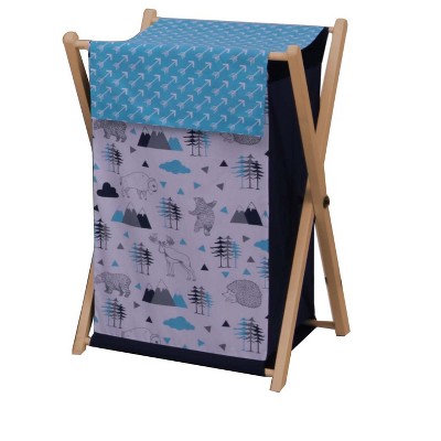 Sweet Jojo Designs Girl Foldable Laundry Hamper with Handles Watercolor Floral Navy Blue And Pink