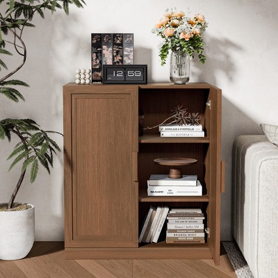 MAYEERTY 16" Tall Storage Cabinet with Wooden Doors 2 Shelves, Freestanding Cabinet for Living Room Kitchen Beige 1pcs