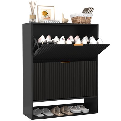 If you prefer something more discreet, under-bed shoe storage containers or ottomans with hidden compartments designed specifically for shoes are a great pick.
