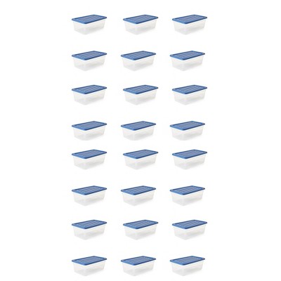 Looking for versatile storage options? Discover a wide range of storage tubs & totes that serve your home organization needs perfectly. Store clothing, toys, out-of-season decorations and other essential items in all-purpose storage tubs & totes that provide sufficient storage space. Keep your valuables in a see-through storage tote which makes it easy for the contents to be identified from any angle. Storage tubs & totes come with a built-in lid and a latch. The lid allows for the storage containers to be perfectly stackable and the latch keeps the items safely stored by securing the lid to the base. Declutter your room by using under-bed storage tubs & totes to conceal your craft supplies and other important documents. If you’re looking for storage options to organize heavyweight items, opt for storage tubs & totes that can hold garage tools, camping supplies, blankets and more. Set aside what you don’t need in stackable storage tubs & totes that help you make efficient use of a vertical storage space.