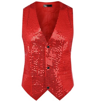 INSPIRE CHIC Men's V-Neck Sleeveless Party Shiny Sequin Vest