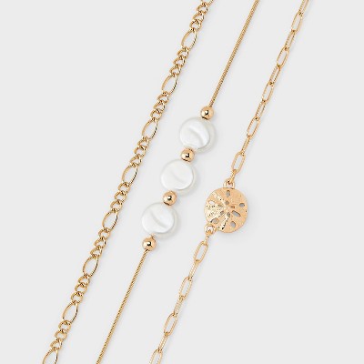 Pearl Herringbone Anklet 3pc Set - A New Day™ Gold