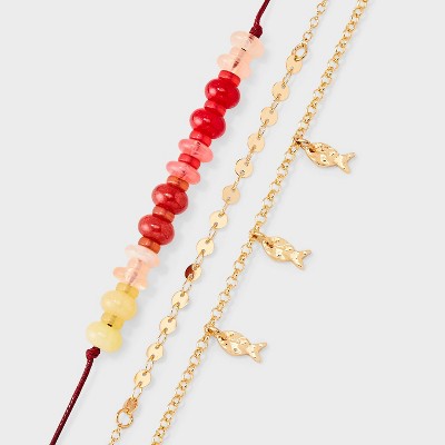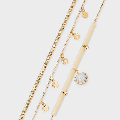 Gem Drop Anklet Set 3pc - A New Day™ Gold: Multi-Strand Surgical Steel, Lobster Claw Clasp