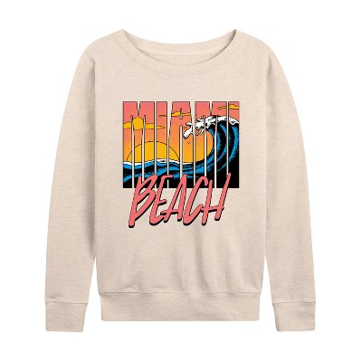 Women's - Instant Message - Miami Beach Lightweight French Terry Wide Neck Long Sleeve Graphic Shirt