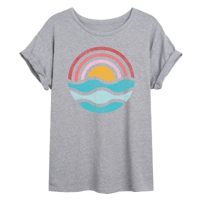 Women's - Instant Message - Simple Sunset Waves Oversized Graphic T-Shirt