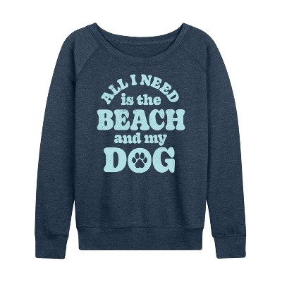 Women's - Instant Message - All I Need is the Beach & my Dog Lightweight French Terry Wide Neck Long Sleeve Graphic Shirt