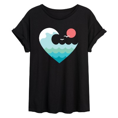 Women's - Instant Message - Wave Heart Sunset Oversized Graphic T-Shirt