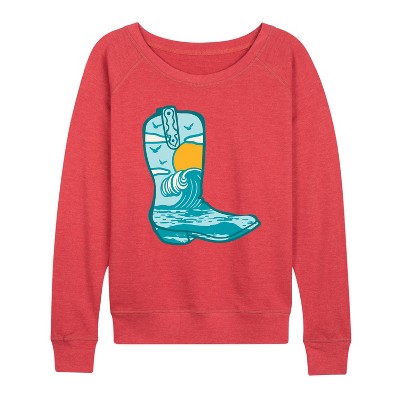 Women's - Instant Message - Blue Beach Boot Lightweight French Terry Wide Neck Long Sleeve Graphic Shirt