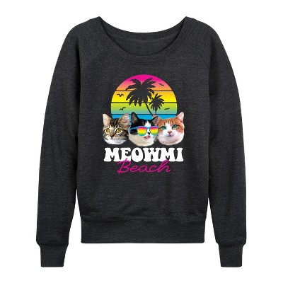 Women's - Instant Message - Meowmi Beach Lightweight French Terry Wide Neck Long Sleeve Graphic Shirt