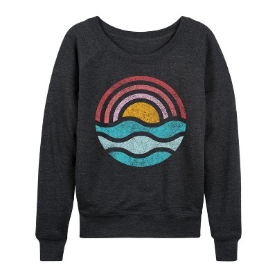 Women's - Instant Message - Simple Sunset Waves Lightweight French Terry Wide Neck Long Sleeve Graphic Shirt