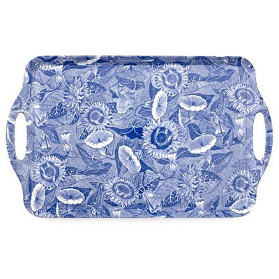 Pimpernel Blue Room Sunflower Large Handled Tray - Rectangular Melamine Serving Tray with Blue Botanical Design & Side Handles - Dishwasher Safe