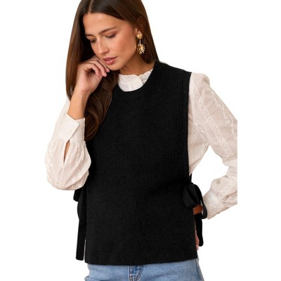 Women's Lace-Up Knit Vest Cardigan, Sleeveless V-Neck Sweater Vest with Adjustable Ties for Casual & Layered Outfits