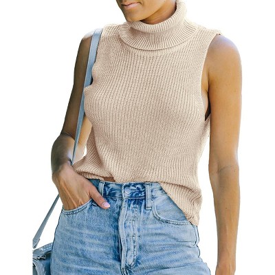Women's Mock Neck Sleeveless Sweater Vest Casual Solid Cap Sleeve Knit Pullover Tank Tops