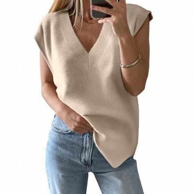 Women's Sweater Vest Sleeveless Casual Cap Sleeve Knit Pullover Tank Tops