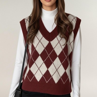 Anna-Kaci Women's Argyle Knit Sweater Vest with V Neck Sleeveless Design and Ribbed Hem