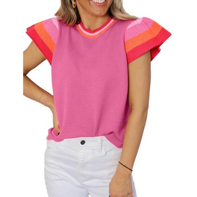 Women Cap Sleeve Sweater Vest Lightweight Summer Crew Neck Casual Tops