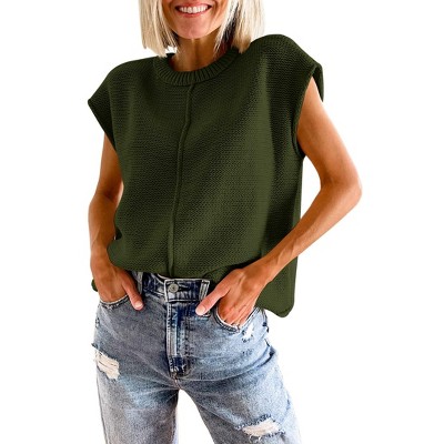 BLUEMING Womens Tank Tops Cap Sleeves Casual Crew Neck Loose Fit Knit Lightweight Pullover Sweater