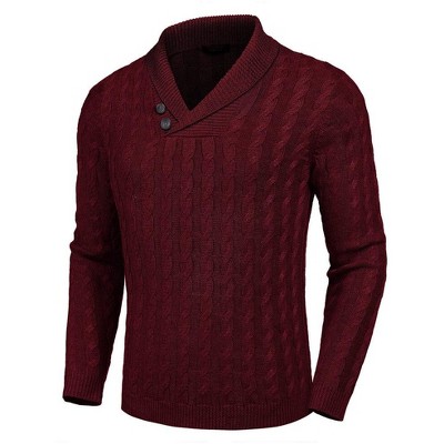 INSPIRE CHIC Men's Long Sleeve V-neck Solid Color Knitted Pullover Sweater