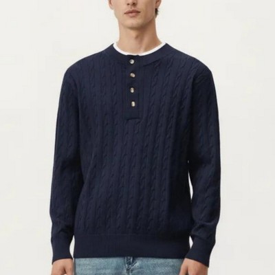 Anna-Kaci Men's Long Sleeve Knit Henley Sweater with Ribbed Trim