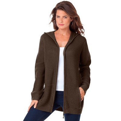 Roaman's Plus Size Waffle Knit Zip Hoodie