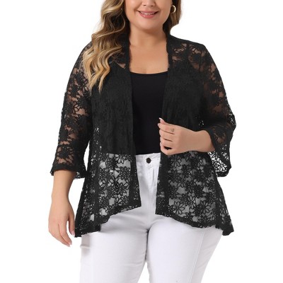 Women's Plus Size Open Front 3/4 Sleeve Sheer Lace Casual Cardigan - Agnes Orinda