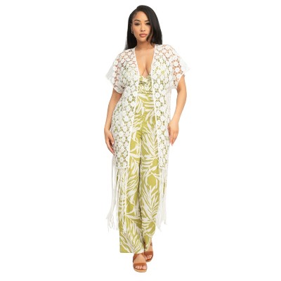 Coolmee Women's Lightweight Crochet Cardigan Tie Front Shrugs Knit Crop Tops