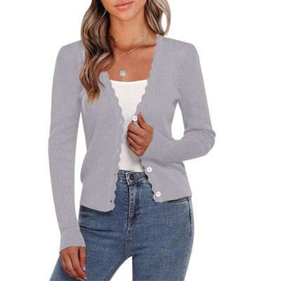 Coolmee Women's Cropped Cardigan Knit ShrugsTops V Neck Button Down Sweaters