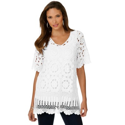 Roaman's Plus Size Medallion Pattern French Crochet Sweater Top