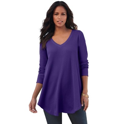 Roaman's Plus Size Knit Thermal V Neck Swing Tunic – Long Sleeve