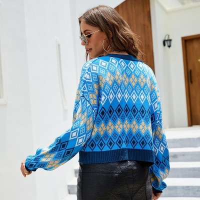 Women Checkered Bishop Sleeve Sweater