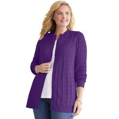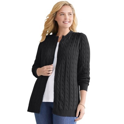 Woman Within Cotton Cable Knit Cardigan Sweater