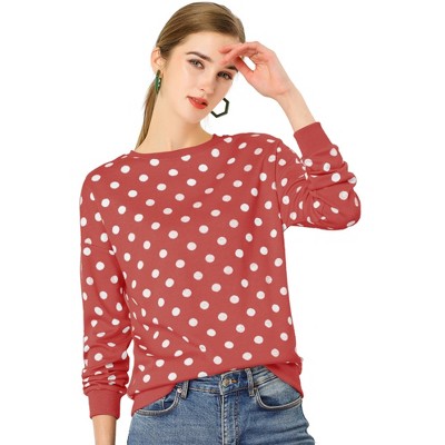 Allegra K Women's Fall Winter Long Sleeve Polka Dots Knitted Pullover Tops
