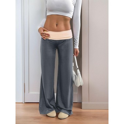 Women's Casual Sweatpants Loose Fit Sport Contrast Colorblock Low Rise Trousers Fold Over Waist Baggy Wide Leg Pants