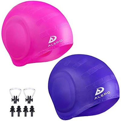DSANE Womens Silicone Swim Cap for Long Hair,3D Ergonomic Design Silicone Swimming Caps for Women Men Adults Boys Girls with Ear Plug and Nose Clip
