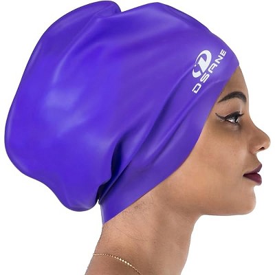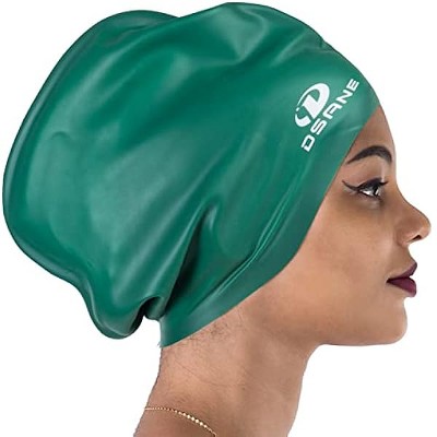DSANE Extra Large Swimming Cap for Women and Men,Special Design Swim Cap for Very Long Thick Curly Hair&Dreadlocks Weaves Braids Afros Silicone