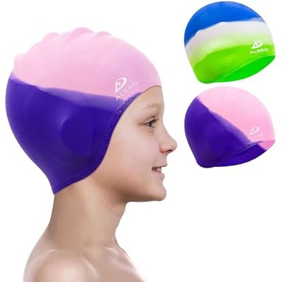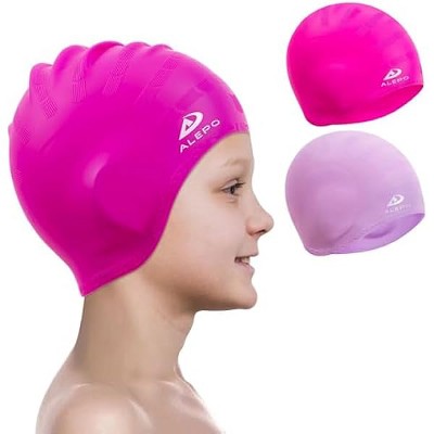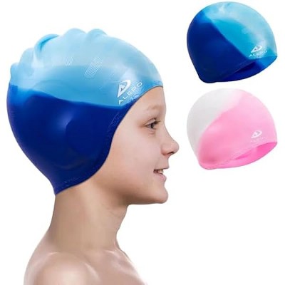 DSANE 2 Pack Kids Swim Caps for Boys Girls, Durable Silicone Swimming Cap with 3D Ear Pockets for Age 3-15 Toddler Child Youth Teen Unisex