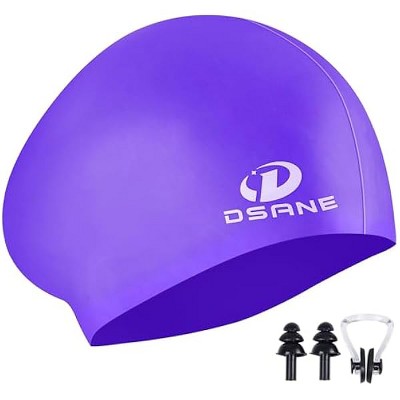 DSANE Womens Silicone Swim Cap for Long Hair,3D Ergonomic Design Silicone Swimming Caps for Women Men Adults Boys Girls with Ear Plug and Nose Clip