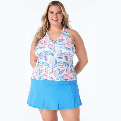 Get ready to hit the waters in style with trendy women’s swimsuit tops, bikini tops & plus-size swimwear from Target. Whether you’re looking for halter swim tops, bandeau-style swimsuit tops, a bralette or a triangle bikini top to pair with swimsuit bottoms, we’ve got you covered. Need a bit more support? Explore underwire swimsuit tops or push-up swimsuit tops that lend more coverage & extra oomph. What’s better? It’s super-easy to browse on Target.com with navigation that lets you find just what you’re looking for. Keep your pool look casual & chic with one piece swimsuits in solids or peppy patterns or glam up with a twist-front bandeaukini that combines coverage & style. Suit up for the pool season in a high neck, longline bikini top with racerback detailing that adds a little extra glam! It gives you all the coverage you need, while keeping your look fresh & fabulous. A halter neck, ribbed bikini top or a strappy tiered tankini also adds flattering detail you’ll love to flaunt. Trendy cutouts at the front or side help level up your look while you play peek-a-boo with the sun. Planning your next vacay with friends? Pack a ruffled bikini top with a scoop neck detail for hours of beachy fun or channel your inner diva with a floral, tie-front bikini top that’ll easily take you from the beach to brunch. Just wrap a sarong over your swimsuit & you’re good to go. Long hours of swimming & sunbathing on your mind? Try a full-coverage rash guard to protect from the sun’s harmful rays. Pair with a coordinating bikini bottom & you’re all set to enjoy a tropical paradise in style. Looking for a trendy, plus size swim top? Target has you covered with a ton of styles, from tiered tankini tops with underwire support & high-coverage high neck designs to strapless bandeau tankini tops, designed to keep you comfy in & out of the water.