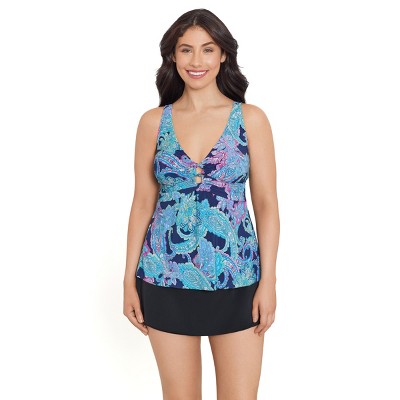 Get ready to hit the waters in style with trendy women’s swimsuit tops, bikini tops & plus-size swimwear from Target. Whether you’re looking for halter swim tops, bandeau-style swimsuit tops, a bralette or a triangle bikini top to pair with swimsuit bottoms, we’ve got you covered. Need a bit more support? Explore underwire swimsuit tops or push-up swimsuit tops that lend more coverage & extra oomph. What’s better? It’s super-easy to browse on Target.com with navigation that lets you find just what you’re looking for. Keep your pool look casual & chic with one piece swimsuits in solids or peppy patterns or glam up with a twist-front bandeaukini that combines coverage & style. Suit up for the pool season in a high neck, longline bikini top with racerback detailing that adds a little extra glam! It gives you all the coverage you need, while keeping your look fresh & fabulous. A halter neck, ribbed bikini top or a strappy tiered tankini also adds flattering detail you’ll love to flaunt. Trendy cutouts at the front or side help level up your look while you play peek-a-boo with the sun. Planning your next vacay with friends? Pack a ruffled bikini top with a scoop neck detail for hours of beachy fun or channel your inner diva with a floral, tie-front bikini top that’ll easily take you from the beach to brunch. Just wrap a sarong over your swimsuit & you’re good to go. Long hours of swimming & sunbathing on your mind? Try a full-coverage rash guard to protect from the sun’s harmful rays. Pair with a coordinating bikini bottom & you’re all set to enjoy a tropical paradise in style. Looking for a trendy, plus size swim top? Target has you covered with a ton of styles, from tiered tankini tops with underwire support & high-coverage high neck designs to strapless bandeau tankini tops, designed to keep you comfy in & out of the water.