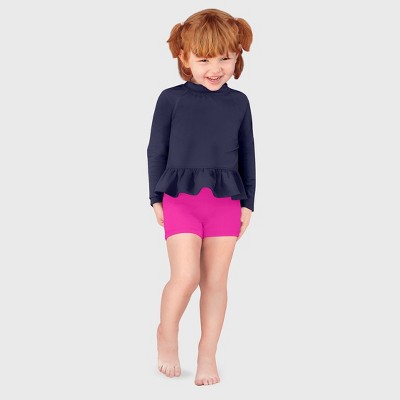 RuffleButts Baby/Toddler Girls UPF50+ Long Sleeve One Piece Rash Guard