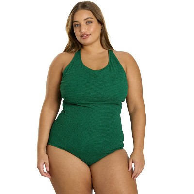 Sporti Plus Size Textured Chlorine Resistant High Neck One Piece Slimsuit
