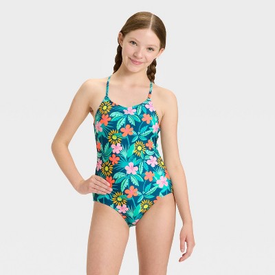 Girls' Vacay Vibes Floral Printed One Piece Swimsuit - art class™
