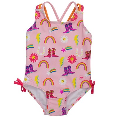 RuffleButts Girls UPF50+ Sun Protected Cross-Back One Piece