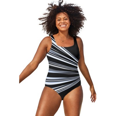 A: Look for suits with ruching, adjustable straps, or underwire support. High-waisted bottoms and wrap-style tops can also be very flattering and provide more structure.